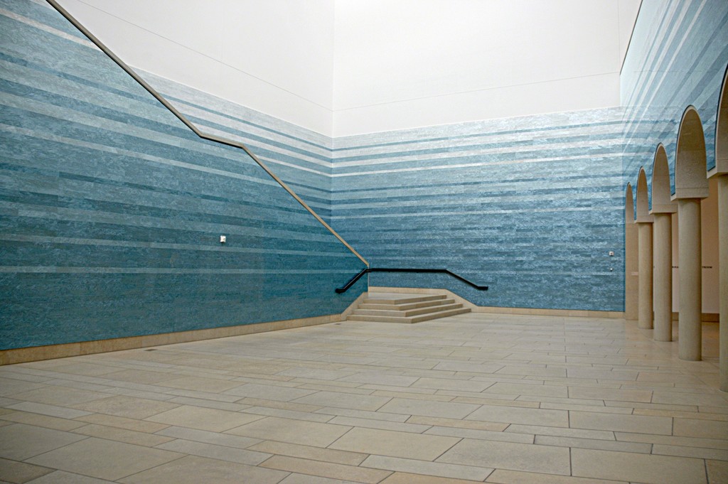 Among the fascinating aspects of this installation was Fernandez’s use of natural materials: clay, fire, charcoal, and paper. From a distance the huge glazed ceramic panel looked like a landscape painting. It was only when you looked closely at the ‘painting’ that a viewer could see that “Fire (America)” was made from thousands of glazed ceramic pieces. There was nothing to indicate the cause of the fire although the landscape could suggest that of the American West. The fire could also be a reference to the slash-and-burn technique used routinely centuries ago by Native Americans for farming and which essentially shaped their environment and designed the American landscape.