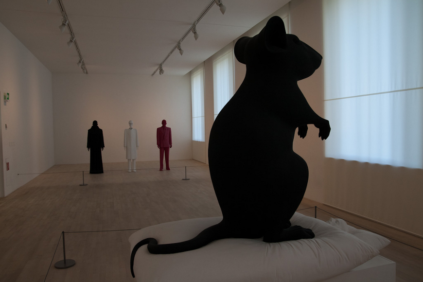 When making sculptures of humans, she often collaborates with a certain male model in works such as her three ‘bad’ men: The Monk, the Doctor, and the Handler. She works first from photographs and makes the mold on top of the model’s body. When her main male model almost died from this process, she switched to making full body casts from mannequins. She still uses human models for the faces and hands of her sculptures. Just like her animal sculptures, her humans are also painted in one solid color to create images that appear like a vision.