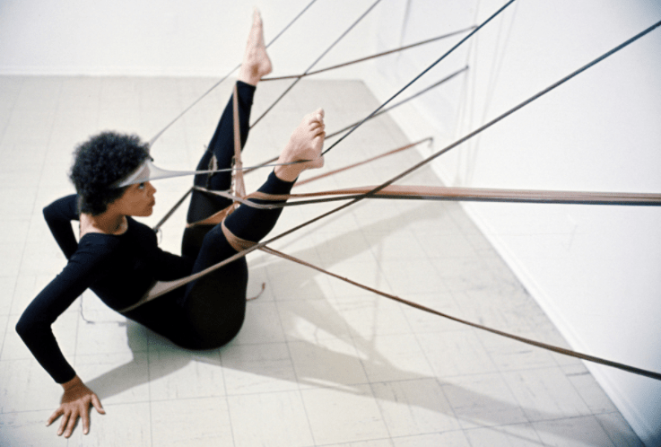 Senga Nengudi is an African American conceptual and performance artist. She was a central figure in Los Angeles’s African American art scene in the 1970s. Her abstract sculptural work of soft sculpture consisted of stretched and twisted textiles, which referenced the human form and evoked the elasticity of women’s bodies. Her performance art used ritual and ceremony and paved the way for the feminist politics of other artists.